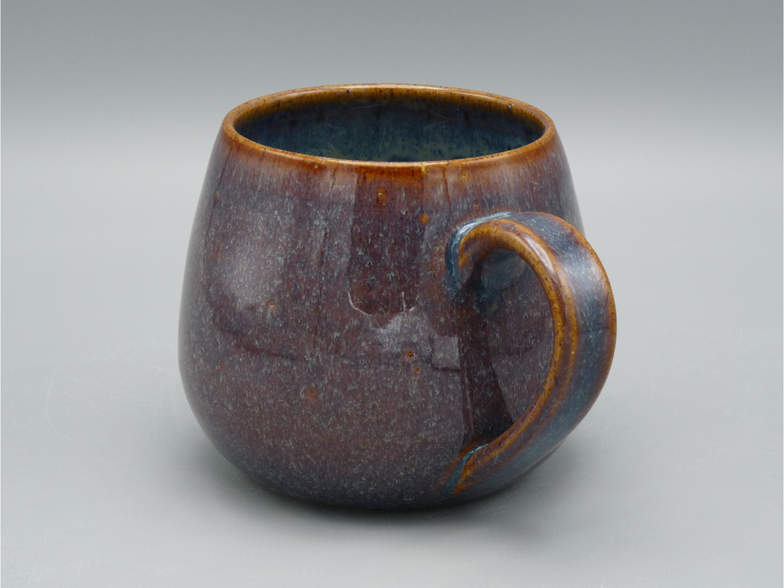 handdrejad mugg med hänkel och tunn kant i lavalera